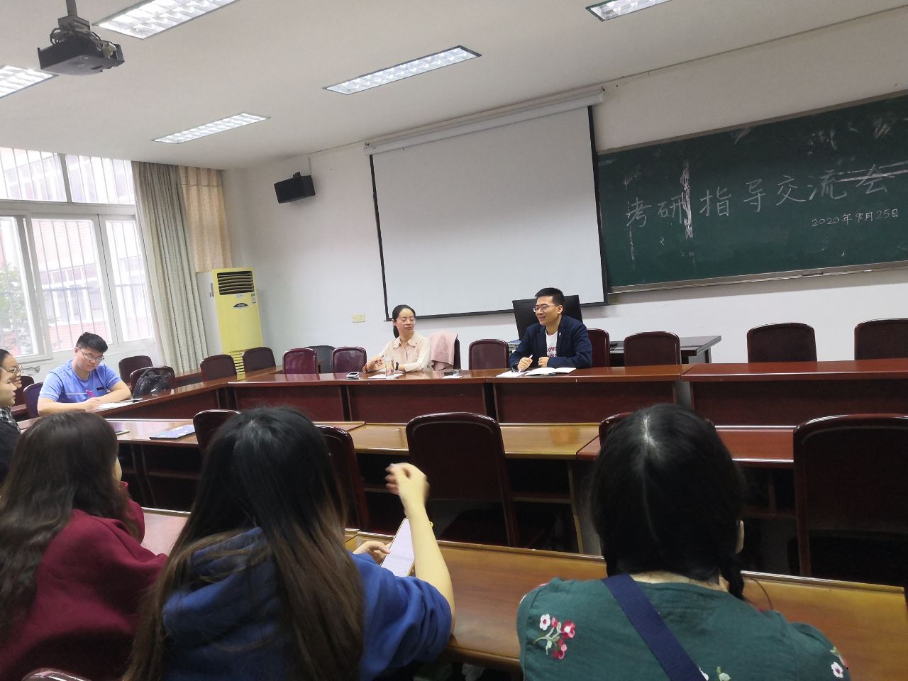 9月25日上午,外国语学院在学院会议室举办考研指导交流会,邀请王琳、蒋庆胜两位博士为2021届计划考研的21名同学做备考指导和经验交流,交流会由学生科副科长刘烨主持。