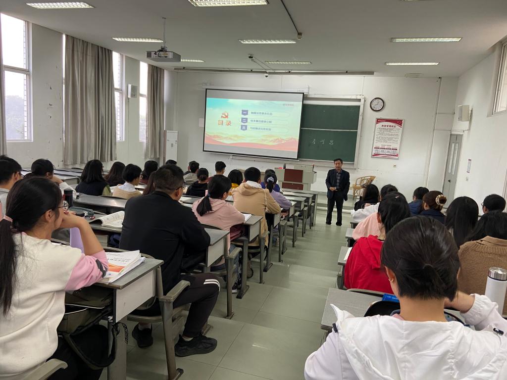 为深入贯彻习近平总书记在学校思想政治理论课教师座谈会上的讲话精神,落实高校“领导干部上讲台”制度,提升思想政治理论课教学效果,11月12日下午,党委常委、副校长刘广益在明理楼302为2018级预防医学本科学生讲授了一堂题为“制度治党”的“形势与政策”课。