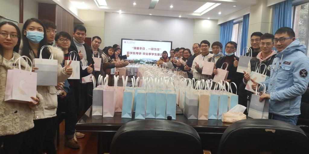 12月15日下午,药学院在含光楼3楼会议室,组织开展了“情暖冬日•一研为定”考研•毕业季“加油包”发放仪式暨学生代表座谈会。药学院主持工作副院长韦思平,党委副书记、纪委书记唐艳斌,学生科全体人员,以及2021届毕业生代表和2018级学生代表,参加了座谈会。座谈会由唐艳斌主持。
