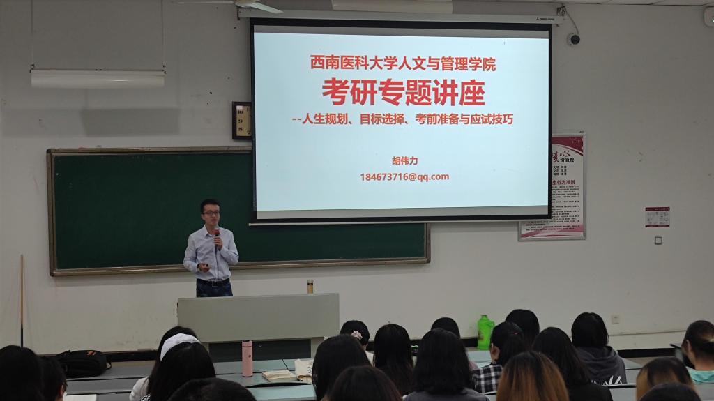 日前,人文与管理学院公共事业管理教研室胡伟力在海川楼313教室为2019级公共事业管理专业的80名本科生开展了主题为“人生规划、目标选择、考前准备与应试技巧”的考研专题讲座。