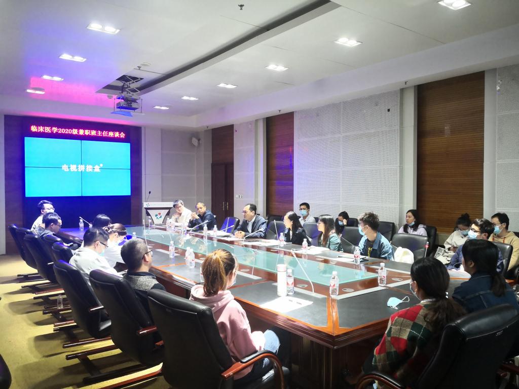 为更好发挥兼职班主任在指导学生成长成才中的作用,10月13日,临床医学院联合基础医学院在附属医院外科大楼四楼会议室召开2020级兼职班主任座谈会,临床医学院附属医院党委副书记黎靖、基础医学院党委副书记黄钰、临床医学院学生科辅导员、2020级临床办辅导员、全体临床2020级兼职班主任、2020级临床办学生代表参加了本次座谈会,会议由临床医学院学生科长王涛主持。