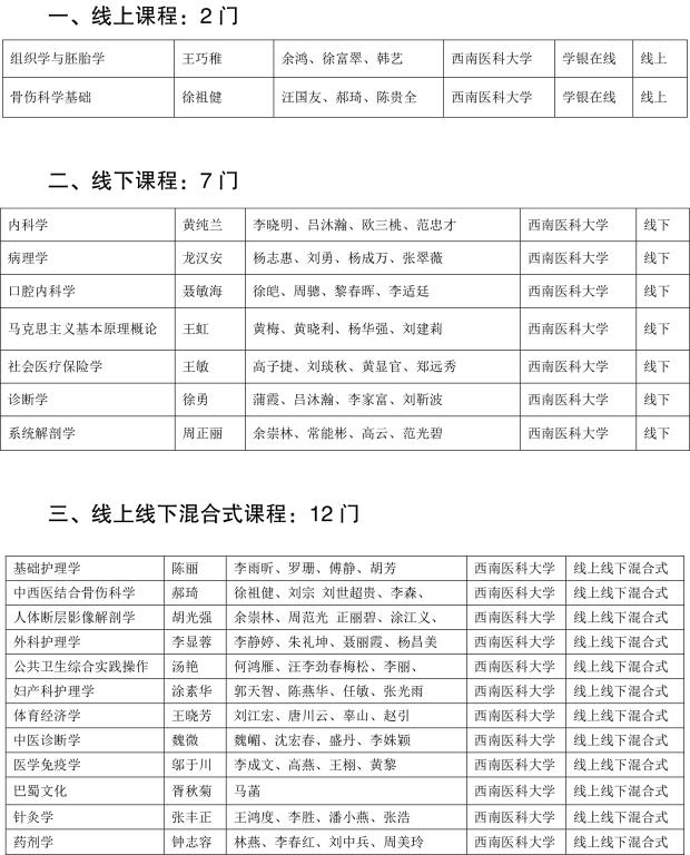 近日,四川省教育厅公布了《关于公布第二批省级一流本科课程认定结果的通知》(川教函〔2021〕493号),kaiyun官网《组织学与胚胎学》等2门课程认定为线上一流课程;《内科学》等7门课程认定为线下一流课程;《基础护理学》等12门课程认定为线上线下混合式一流课程;《市场调查与预测》认定为社会实践一流课程;《脑血管临床医学》虚拟仿真实验教学项目等4项认定为虚拟仿真实验教学一流课程。