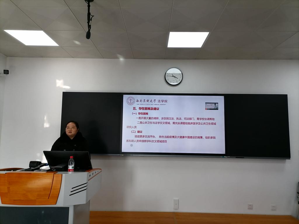 王林智结合国家社科项目《重大疫情背景下公共卫生治理法治化实现路径研究》申报心得,就课题申报选题、论证、前期基础、团队打造等方面进行了详细的讲解。刘楠作为2020年学院新引进的高层次博士人才,到校一年立项省部级、厅局级课题共计3项,以自身课题申报经验从注重选题、夯实研究基础、打磨研究综述等方面和与会老师进行深入交流。