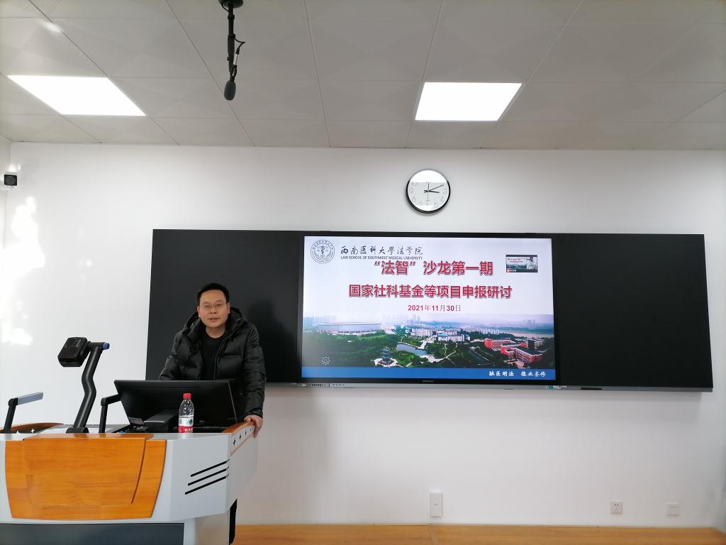 11月30日下午,法学院“法智”沙龙第一期在学院法律诊所(文渊楼518)如期举行。此次沙龙的主题是“国家社科基金等项目申报研讨”,邀请到法学院王林智(2020年国家社科基金立项)、刘楠(2021年四川省社科规划项目“法治专项”立项)作为本期沙龙的主讲嘉宾。法学院院长罗刚,博士、副高及以上职称等教师参加了本次讨论,沙龙由副院长先德奇主持。