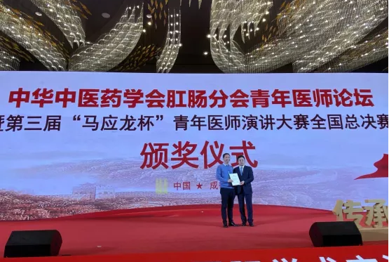 附属医院肛肠痔瘘科闻永医师,以精准流畅的手术视频,精彩细致的演讲,获得中华中医药学会肛肠分会青年医师论坛暨马应龙杯青年医师演讲大赛全国总决赛一等奖。