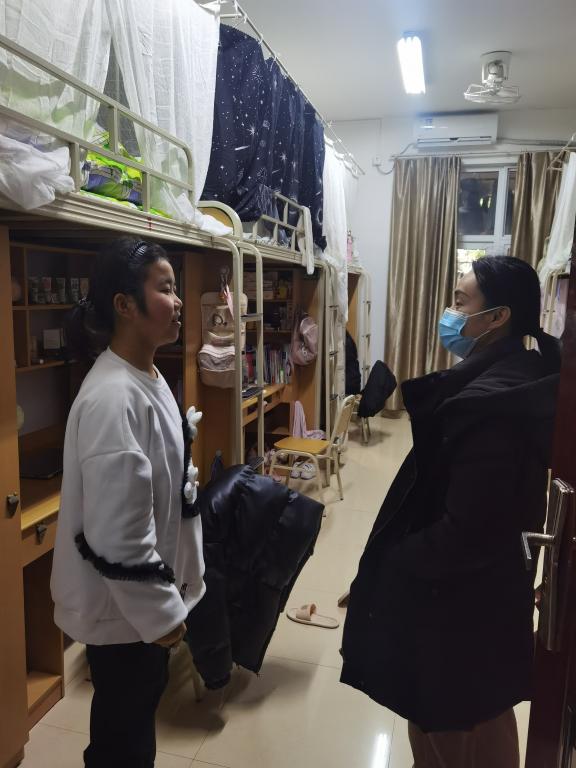 12月13日中午,外国语学院党总支副书记邓盛木、学生科科长刘烨走访英语专业学生寝室,检查学生寝室冬季防火用电安全情况并关心慰问学生。