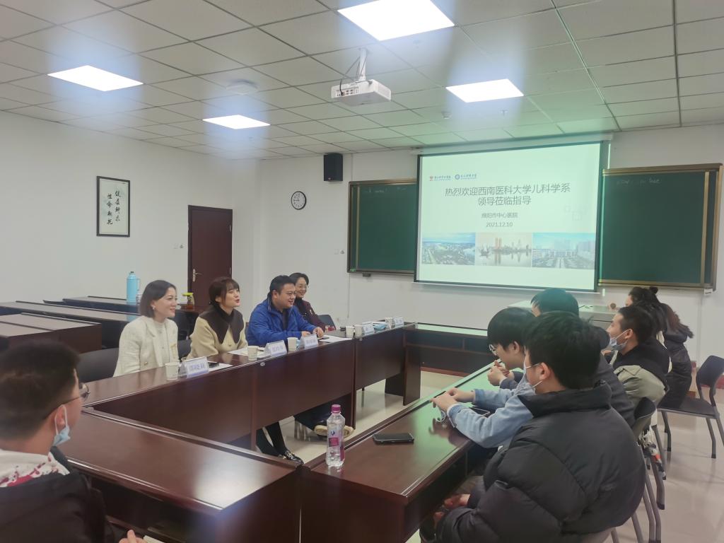 近日,儿科学系系主任董文斌,党总支书记杨敏一行,前往绵阳市中心医院看望2017级实习生,开展考研、就业指导工作。并与绵阳市中心医院、实习学生,以座谈会的形式分别进行了交流。