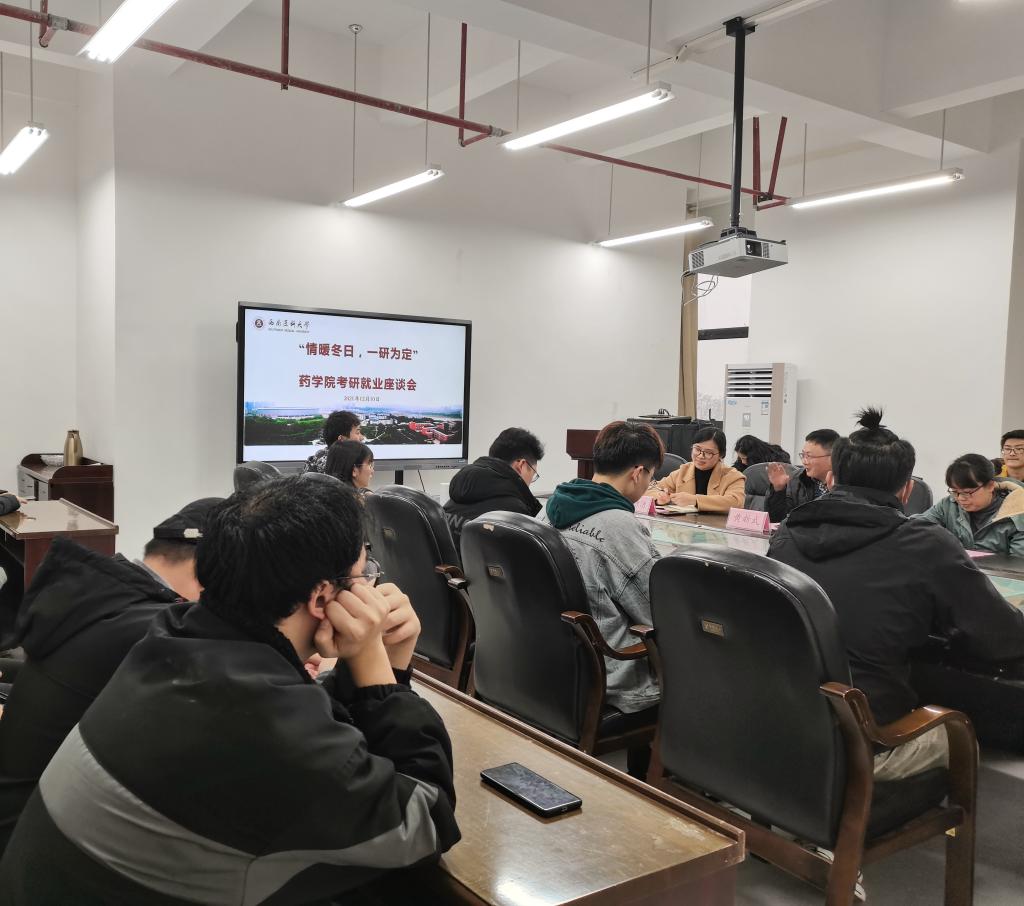 12月10日下午,药学院在弘润楼333会议室举办了“情暖冬日,一研为定”考研就业座谈会。座谈会由学生科副科长闫洁洁主持。
