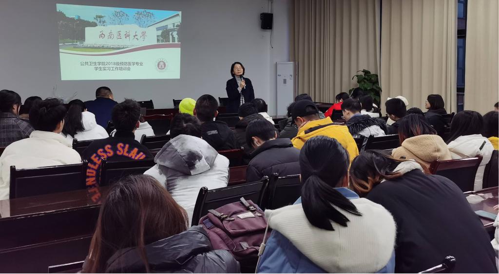 为进一步提升公共卫生学院学生的实践能力,做好学生实习工作,引导学生做好实习前的准备以及毕业前毕业设计的各项准备,1月3-4日,公共卫生学院在仁济楼319分专业分批次举行实习动员暨毕业设计培训,学院院长马玲、党总支副书记金川出席了此次动员大会,2018级预防医学专业、卫生检验与检疫专业、食品卫生与营养学全体同学以及部分教师代表参加,学生科科长彭丽冰主持会议。