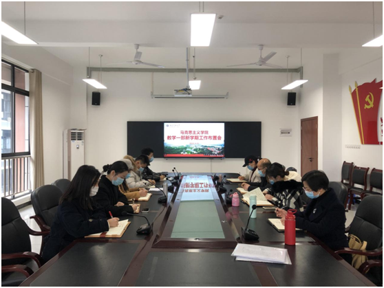2022年2月25日下午,马克思主义学院教学一部召开全体教师会议,传达贯彻学院会议精神并就教学一部2022年春季学期工作进行安排部署。