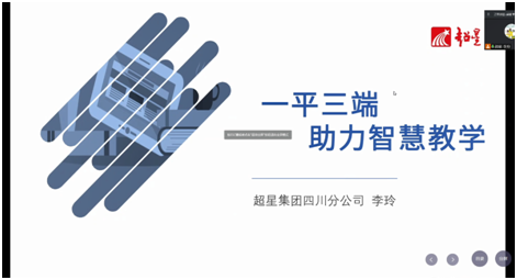 超星集团四川分公司产品技术经理李玲以“一平三端助力智慧教学”为主题,从同步课堂、直播、腾讯会议的使用和网络教学平台课程创建两方面进行了学习通的使用介绍,并结合所讲授的课程进行了操作演示。
