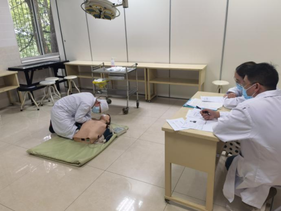 此次考试以客观结构化多站式临床技能考试(OSCE)的方式进行,每名考生轮转6考站,每站10分钟,分别考查病史采集、体格检查和基本操作能力。临床医学院根据考生数量和场地情况,共设置6组平行考组,每组6个考站(考室)。