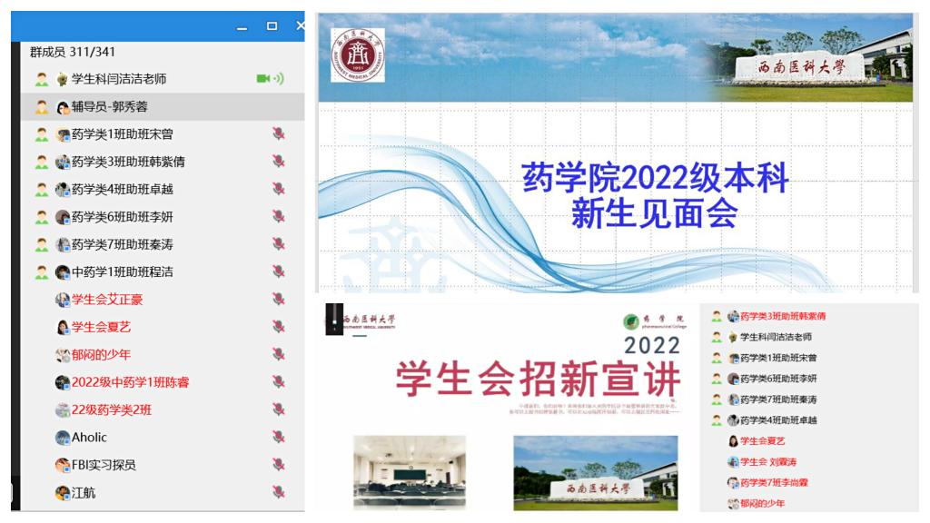最后,学生会主席团介绍了药学院学生会工作及新学年招新要求,并在线答疑帮助新生了解药学院学习和生活情况。