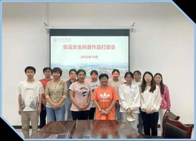 学院任课教师度重视此次活动,2022年10月1日以腾讯会议形式开展作品创作动员会和科普作品经验分享,2022年10月21日在仁济楼320会议室师生共同观看学生作品、提出修改意见,初筛科普作品。2022年10月28日在仁济楼营养教研室任,课教师继续对修改后的推荐作品作进一步打磨,提出修改意见,并推选《提高免疫,轻松战“疫”》《冰箱不是保险箱》等五个作品参赛。