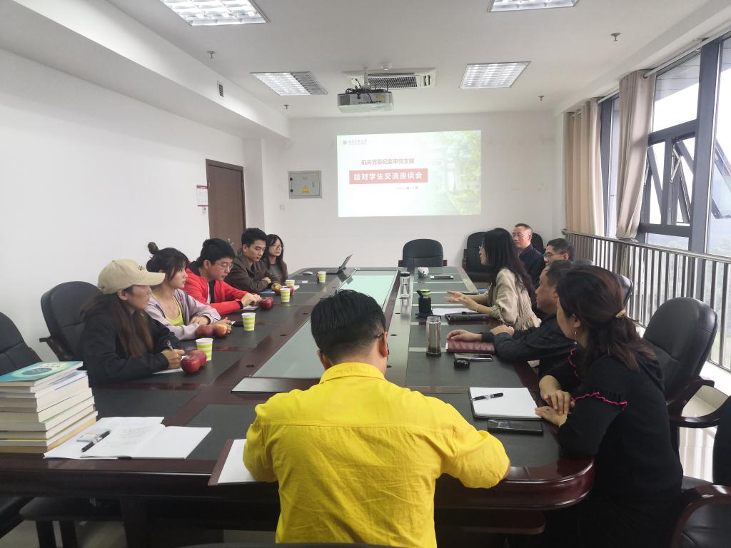 为进一步关注结对学生的身心健康,加强学生思想政治工作,纪监审党支部于11月10日下午在德诚楼912会议室,组织召开结对学生交流座谈会,支部所辖部门处级领导干部、支委,5名结对学生代表参加了座谈。