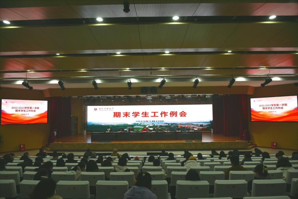1月10日上午,2022-2023学年第一学期期末学生工作例会在城北校区第一学术报告厅召开。人事处、武装保卫处、基建后勤处等相关部门领导,学生工作部、团委全体人员以及全体专兼职辅导员(含分管学生工作领导、新进脱产辅导员、辅导员助理)共计130余人参加了会议。会议由学生工作部部长谭群英主持。