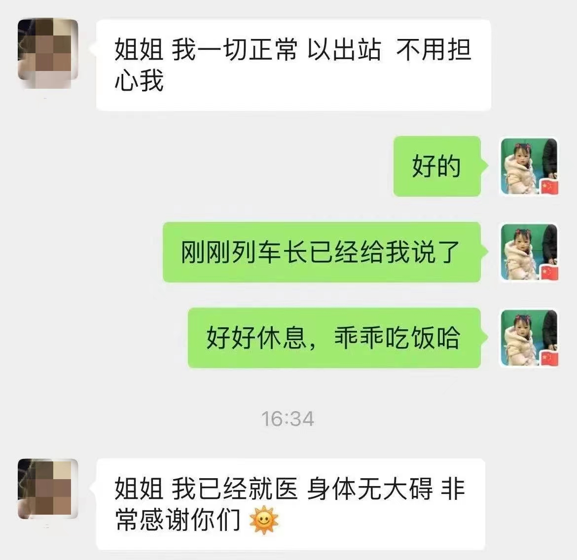 当日16:34,女孩主动给彭艳发了消息,表示目前已就医,身体无大碍,并感谢她们的帮助。