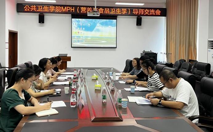 7月12日下午15时,公共卫生学院MPH营养与食品卫生学科组在仁济楼334会议室举行了导师交流会。会议由公共卫生学院院长马玲主持。公共卫生学院研究生导师杨艳、杨懿,汪敏、古从伟以及校外兼职导师山东大学公共卫生学院吴昊教授、四川省疾病预防控制中心胥馨尹副所长、曹冉冉副主任技师以及营养教研室与卫检教研室老师参加了交流会。