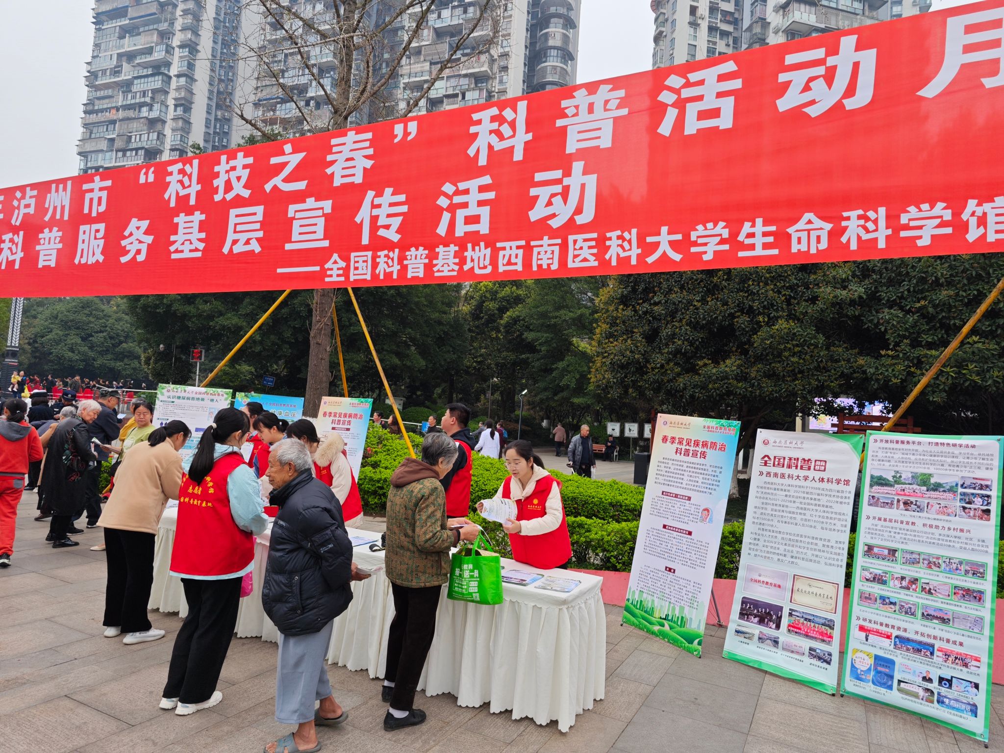 四川省省级科普基地西南医大附院健康促进科普基地在江阳公园举行了惠民义诊,来自医院胸外科、神经内科等科室的24名医护人员在现场免费诊治。同时,医院还免费为群众测量血糖、血压,发放健康科普资料,为广大群众提供健康咨询服务。