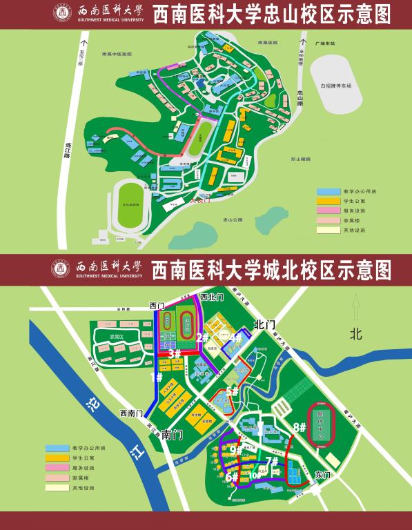 kaiyun官方网站入口忠山校区、城北校区校园示意图