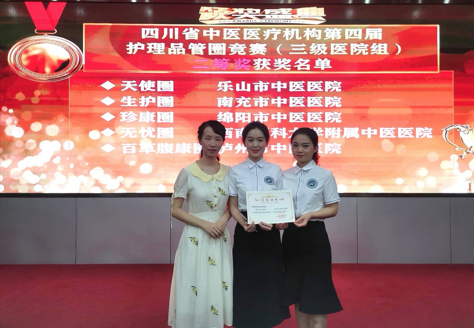 8月15日,四川省中医医疗机构第四届护理品管圈竞赛在成都举行,kaiyun官方网站入口附属中医医院护理部推选的“<降低中风恢复期患者主要照护者的焦虑发生率>——无忧圈”在26家医疗单位中脱颖而出,荣获三级医院组二等奖。