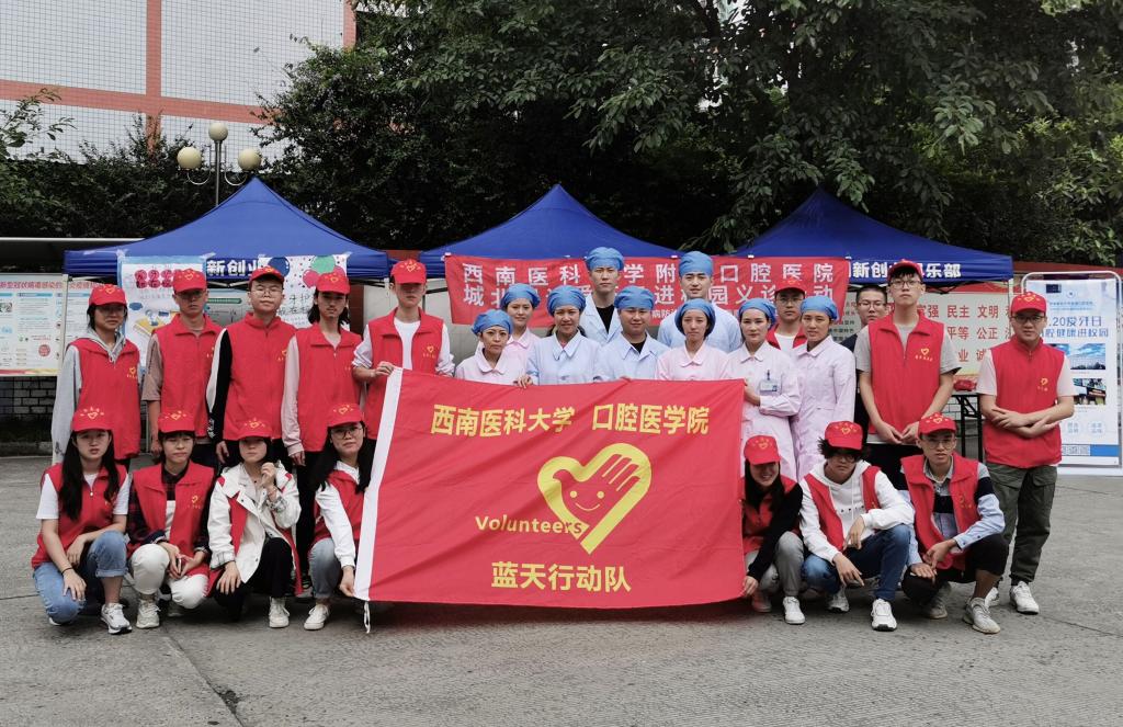 9月18日上午,附属口腔医院城北门诊部的口腔专家、护士、口腔医学院蓝天行动队的学生志愿者一行30人在kaiyun官方网站入口城北校区东膳堂门口如期举行一年一度的“爱牙日义诊进校园”活动。