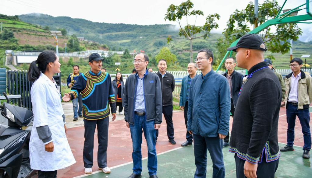 特补乃乌村这段时间一直在下雨,村里的小河水流湍急,水泥路上也湿漉漉的,徐勇一边走,一边仔细询问医院派驻在特补乃乌村的驻村书记郑煜和驻村干部孔亚锋:“这个雨对村民的生产生活有影响吗?村里防汛措施做得怎么样?有没有造成财产损失?”