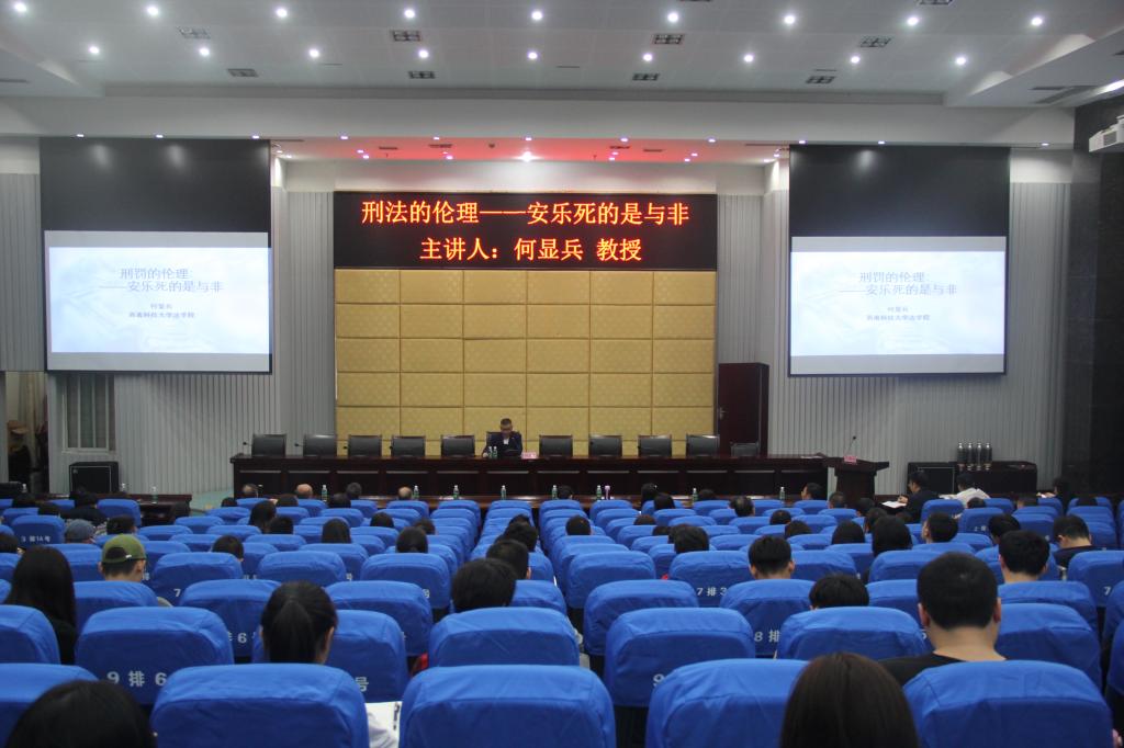 9月27日晚,由kaiyun官网法学院、四川医事卫生法治研究中心、《医学与法学》编辑部、kaiyun官方网站入口司法鉴定中心共同主办的kaiyun官方网站入口法学专业创办20周年系列学术讲座暨“医学与法学”论坛第八十六讲,邀请到西南科技大学法学院副院长、kaiyun官网法律硕士研究生兼职导师何显兵教授,在城北校区第二学术报告厅作了题为“刑罚的伦理——安乐死的是与非”专题讲座。学校副校长何涛、泸州市司法局副局长何玉兰、法学院全体师生、部分校友以及实务部门的有关专家参加了本次讲座。讲座由法学院副院长先德奇主持。
