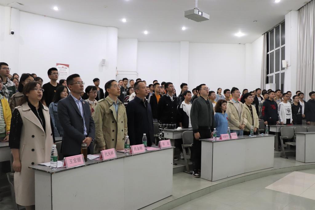 晚上7点,新生见面会由党委副书记王宏丽主持召开,党委书记代天祥、院长肖金刚、副院长屈进、学生科及学生辅导员相关教师和全体2020级新生、部分2019级学生代表参加了会议。大会在合唱国歌中拉开序幕。