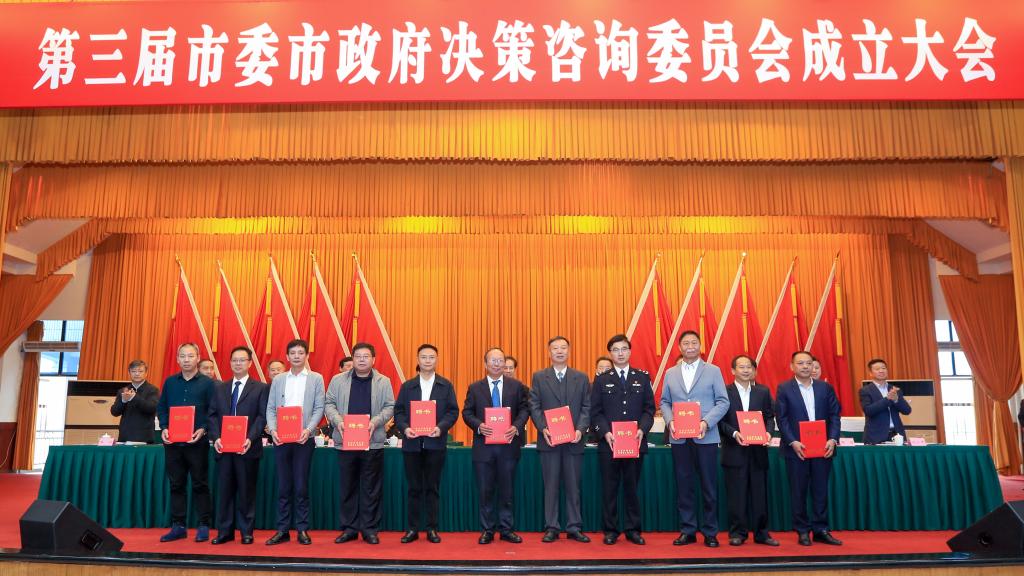 10月10日下午,第三届中共泸州市委市人民政府决策咨询委员会成立大会在南苑会议中心举行。四川省决策咨询委员会主任、省人大常委会原党组书记、副主任陈光志到会祝贺指导。市委书记刘强出席并讲话。市委副书记、市长杨林兴主持大会。党委书记廖斌、人文与管理学院院长赵成文受邀出席会议。赵成文教授作为代表上主席台接受聘书颁发。