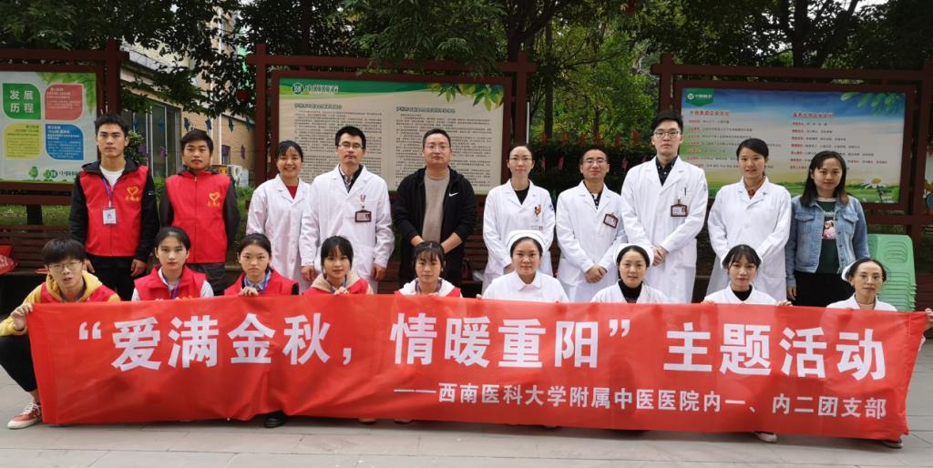 10月25日,附属中医医院内一、内二团支部及中西医结合学院分团委、学生科联合在泸州市中颐•金色颐养园开展了“爱满金秋,温暖重阳”主题尊老、爱老、敬老义诊活动。