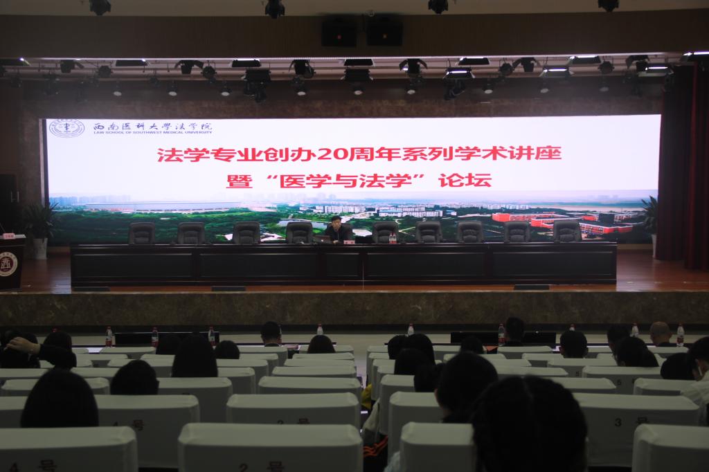 10月23日晚,由法学院、四川医事卫生法治研究中心、《医学与法学》编辑部、kaiyun官方网站入口司法鉴定中心共同主办的法学专业创办20周年系列学术讲座暨“医学与法学”论坛第88讲在学校德诚楼学术报告厅举行。本次讲座邀请到了中国律师法学研究会副会长、中国犯罪学研究会常务理事、广西民族大学地方法治研究中心主任、广西民族大学法学院二级教授廖斌作题为“对重大突发公共卫生事件下法治应对的思考”的专题讲座。法学院全体师生参加了本次讲座,讲座由法学院《医学与法学》编辑部副主任王林智主持。