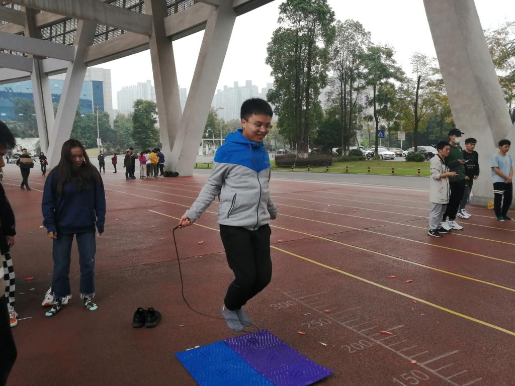 趣味运动会正式开始前,同学们个个意气风发,斗志昂扬,高年级的同学们以一段劲歌热舞拉开帷幕。此次趣味运动会由师生分别组成4支参赛队伍,每队按照不同的项目规则,派遣队员参加比赛。现场设有六个比赛项目,分别是“滚雪球”“踩气球”“心心相印背夹球”“拍七令”“指压板跳绳接力”“爱的魔力转圈圈”。其中,趣味横生的"踩气球"环节中,各队师生完美诠释了“快”“准”“狠”的绝技;“心心相印背夹球”则处处显示着队员们的默契配合。激烈而紧张的新生趣味运动会在一片欢声笑语中结束了。比赛最后,由学生林宏为大家献上了《想见你想见你》和《你要相信这不是最后一天》两首歌曲,意在欢迎新生到来的同时,鼓励大家以积极向上的心态面对大学生活。
