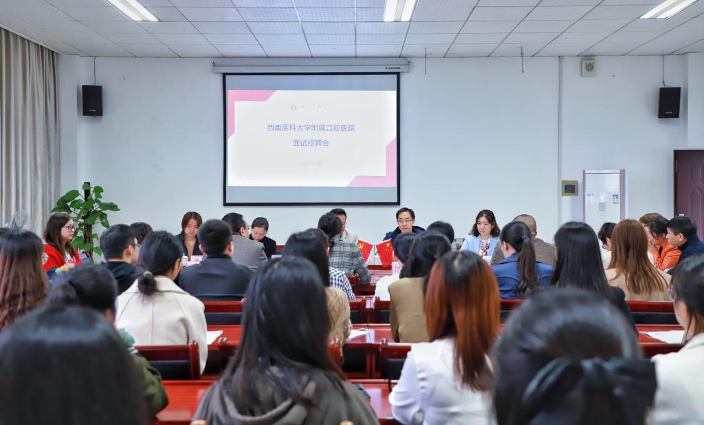 1028日下午,护理学院在海川楼4楼会议室举办了护理学院2020年第一场专场招聘会,附属口腔医院党委书记代天祥、院长肖金刚等医院领导及护理学院全体处科级干部出席,招聘会由护理学院党委书记孙鸿燕主持。