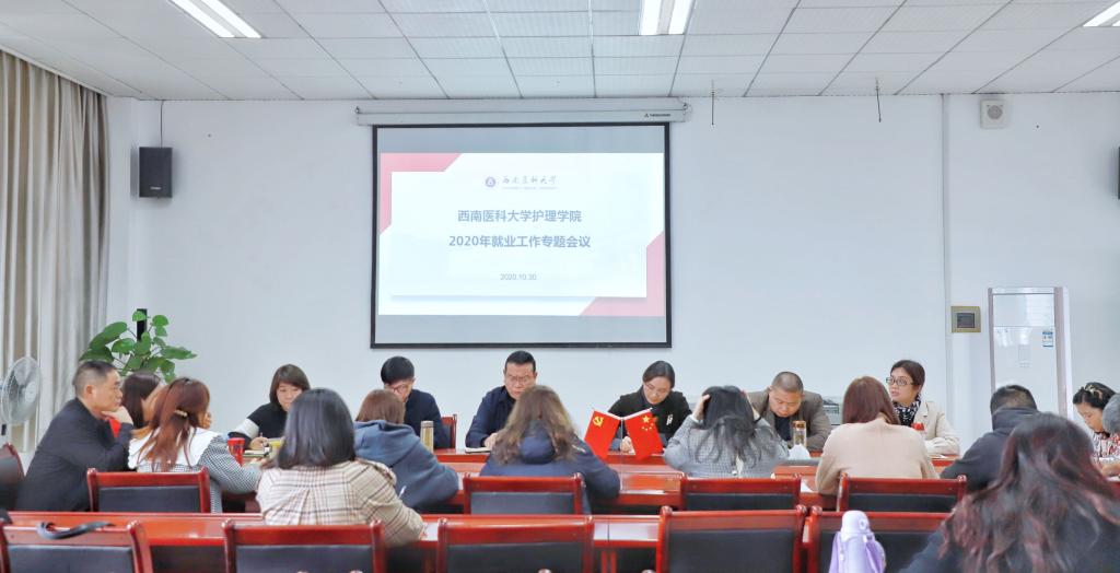 1030日下午,护理学院在海川楼4楼会议室召开了2020年就业工作专题会,院校全体处科级领导、辅导员、就业指导老师、兼职班主任参加了会议。会议总结了2020届毕业生就业工作并就2021届毕业生就业工作进行了布置,会议还进行了交流发言,与会人员分享了就业指导中的个人心得及经验做法,分析了就业工作中存在的问题并积极为2021届毕业生就业工作献言献策。院校党委书记孙鸿燕总结讲话,肯定了疫情背景下院校2020届毕业生就业工作的各项举措以及取得的成绩,提出了2021届就业工作的目标和希望。