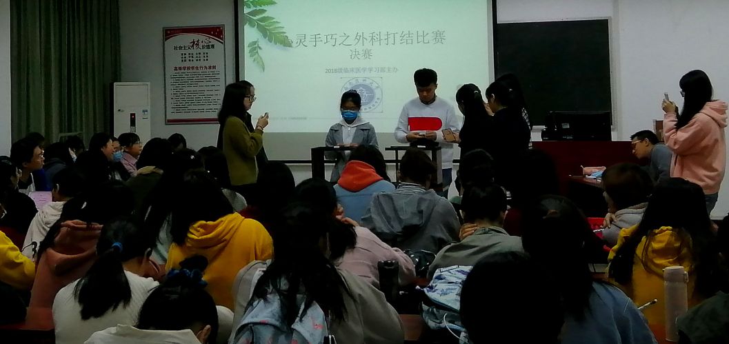 10月23-31日,由基础医学院2018级临床办举办的外科学技能比赛在忠山校区举办。通过精彩激烈的初赛和现场比试,展现出同学们心灵手巧的外科学实践技能。此次活动学生参与度较高,覆盖面广,丰富了同学们的课余生活,促进了课堂知识向课外生活拓展,同时也营造了熟能生巧的学习氛围。