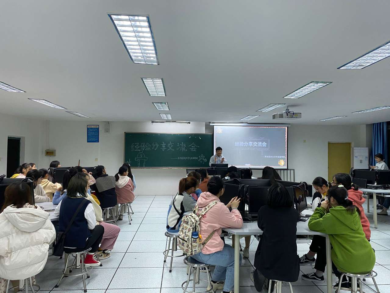 全体新生认真聆听,并与学姐们热烈互动交流,取得了预期的效果。此次交流会让新生们感受到了来自学姐学长们的关怀,更收获了宝贵的经验方法,有助于今后的学习和成长。
