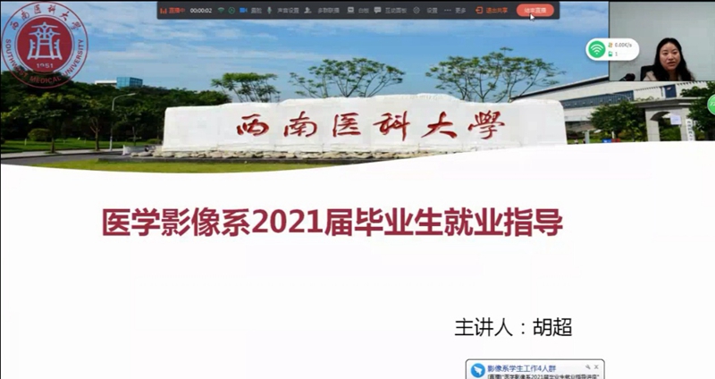 为加强对毕业生的就业指导与帮助,做好毕业生的就业工作,11月5日,医学影像系在钉钉平台举行了2021届毕业生就业指导讲座。本次讲座由医学影像系学生科科长胡超主讲,全体2021届毕业生参加了讲座。