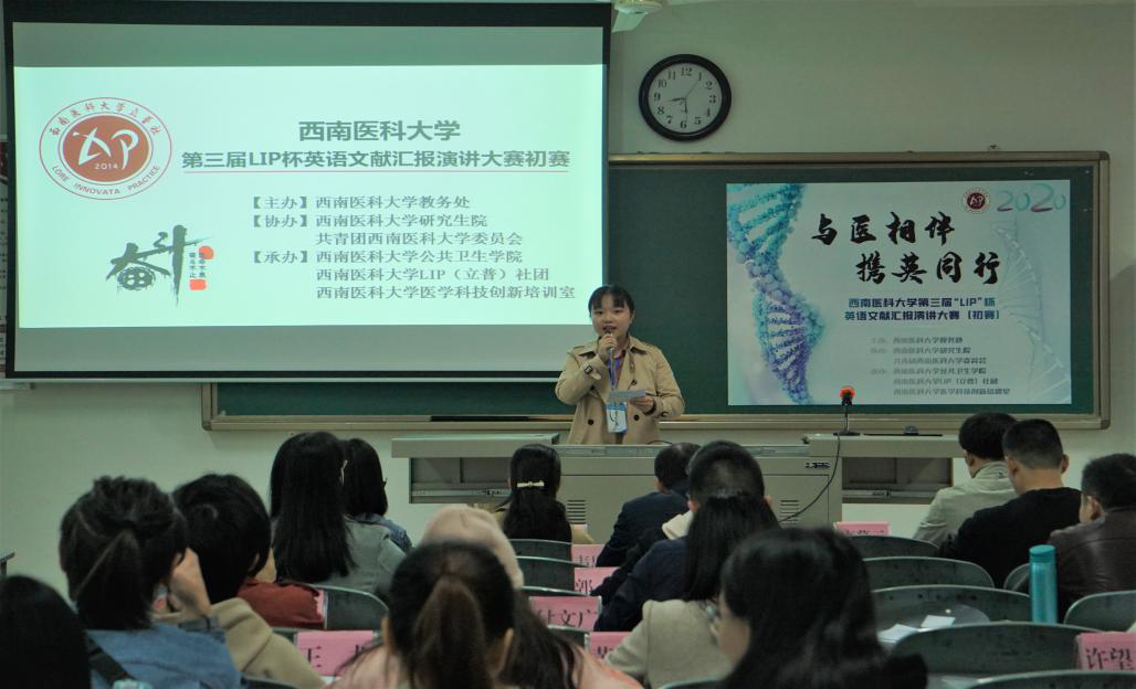 为丰富学生课余生活,激发学生学习英语热情,提高学生的英语口语表达能力、英文文献阅读能力以及科研逻辑思维,为学生提供展示自我的平台,11月8日上午,由学校教务处主办,研究生院、校团委协办,公共卫生学院LIP社承办的“kaiyun官方网站入口第三届LIP杯英语文献汇报演讲大赛(初赛)”在海川楼举行。
