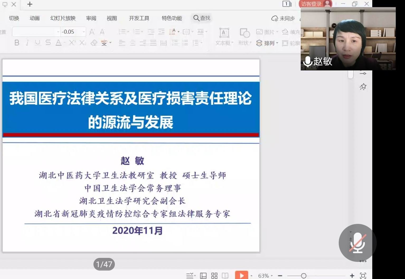 11月10日晚,由法学院、四川医事卫生法治研究中心、《医学与法学》编辑部、司法鉴定中心共同主办的法学专业创办20周年系列学术讲座暨“医学与法学”论坛第89讲在腾讯会议平台上举行。本次讲座邀请到了中国卫生法学会常务理事、中国医院协会医疗法制专业委员会委员、湖北中医药大学赵敏教授作了题为“我国医疗法律关系及医疗损害责任理论的源流与发展”的线上讲座。法学院全体师生参加了本次会议,会议由法学院医事法学教研室主任刘霞主持。