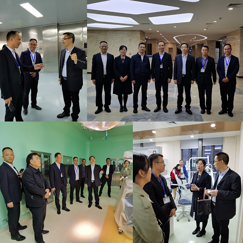 座谈会结束后,在麻建丰、刘劲松和邓辉陪同下,考察团分组参观了今年11月底即将投入使用的温医大口腔龙湾新院。新院新颖的设计风格、温馨的就诊环境、规范的科室布局令考场团印象深刻。