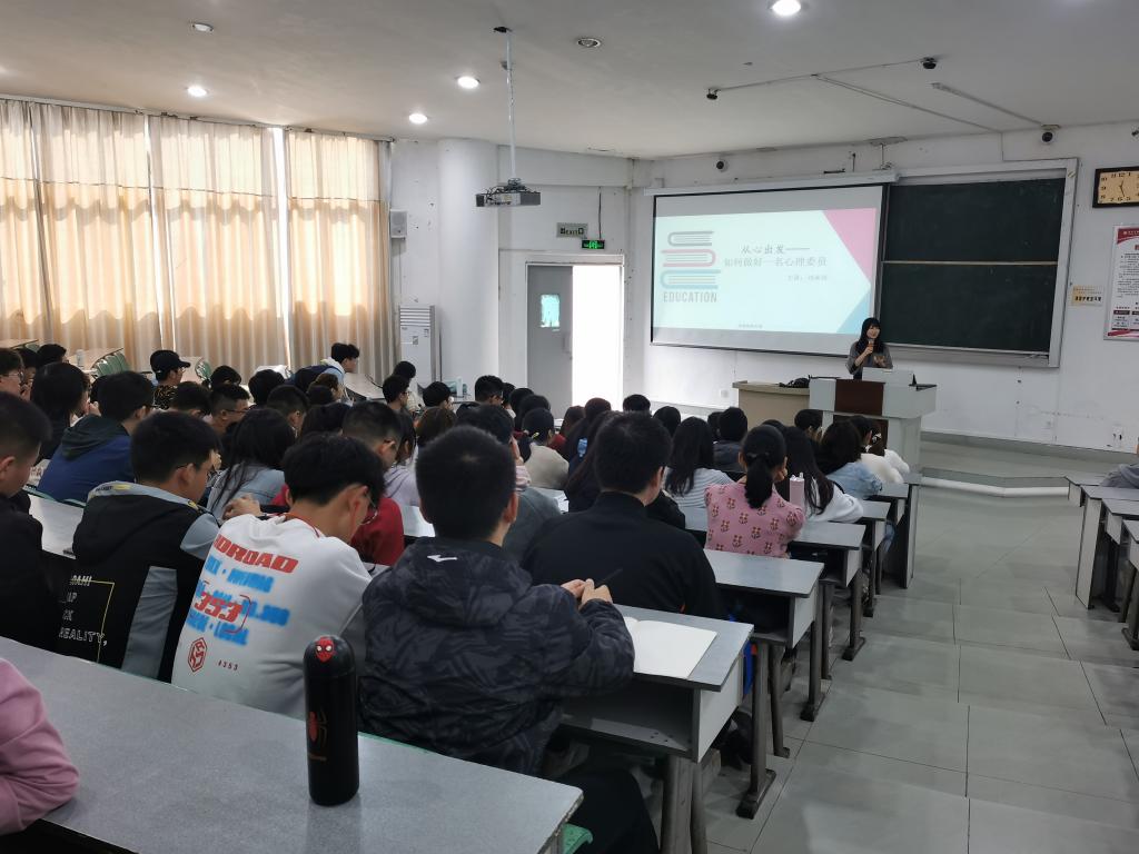 在讲座中,刘承珍针对高校心理咨询做了讲解,希望心理委员们能带领同学们认识自己,提高心理素质,提高“情商”和“逆商”。并向心理委员们介绍了心理委员的基本职责,包括宣传普及心理健康知识、组织和开展心理健康教育活动、帮助同学缓解心理困扰、及时反馈自我和他人的异常心理问题等。在日常工作上,心理委员们需要定期报告,查看并反馈心理晴雨表,也要组织心理宣讲与心理班会的开展;并且要积极与寝室长沟通,结合本班学生的现状开展调查研究;如有突然情况、异常情况,要及时反馈给年级老师。随后,他强调了心理委员的工作原则,包括积极助人、实事求是、保持中立原则以及保密原则。讲座的最后,刘承珍同心理委员们讨论了一些大学生常见的心理问题,如学习上的问题、情绪情感上等问题,针对这些问题,他向心理委员们提出了具体的解决方法,讲授了心理危机干预方面的基础知识,心理委员需要具备良好的心理素质、组织协调能力等基本素质,特别是需要拥有一定的“共情”能力和“接纳”能力。
