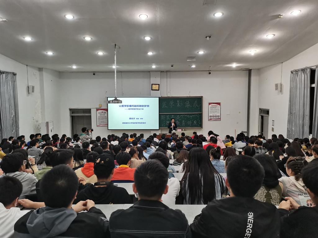 唐光才和陆笑非分别介绍了医学影像系的办学历史和专业设置,从怎样认识专业、怎样学好专业、树立正确的人生观和就业观四个方面给学生们作出指导,帮助学生更好地学习专业,规划自己的大学生活。