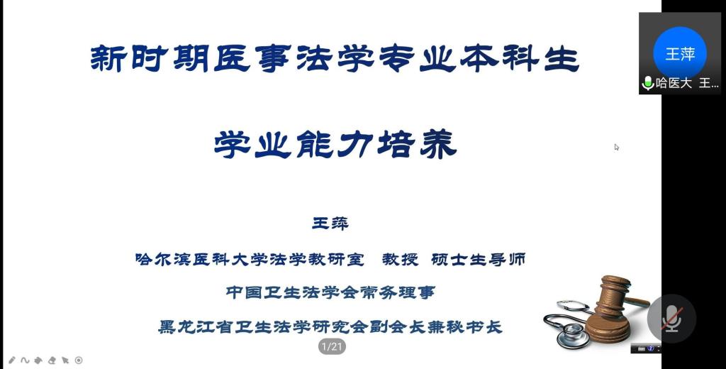 11月25日晚,由法学院、四川医事卫生法治研究中心、《医学与法学》编辑部、kaiyun官方网站入口司法鉴定中心共同主办的法学专业创办20周年系列学术讲座暨“医学与法学”论坛第90讲在腾讯会议上举行。本次讲座邀请到了中国卫生法学会常务理事、黑龙江省卫生法学研究会副会长兼秘书长、哈尔滨医科大学人文社会科学学院法学教研室主任王萍,作了题为“新时期医事法学专业本科生学业能力培养”的专题讲座。法学院全体师生参加了本次讲座,讲座由法学院党总支副书记黄莉主持。