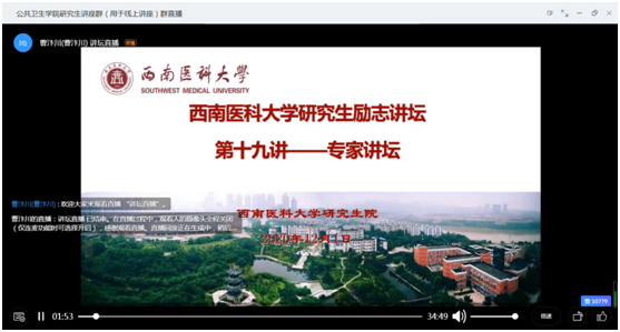 12月1日是第33个“世界艾滋病日”,我国的宣传主题是“携手防疫抗艾,共担健康责任”。12月1日晚,由研究生院主办的研究生励志讲坛第十九讲——专家讲坛在钉钉平台举行,讲坛邀请附属医院曹汴川博士作了“艾滋病的现状与预防”的专题讲座。曹汴川从HIV基本知识、中国HIV流行病学概况以及如何预防艾滋病等方面宣传了艾滋病的危害和主动检测的重要意义、普及了防范感染艾滋病的知识与技能,并在线回答学生提问,鼓励学生做自己健康的守护者、防艾知识的传播者和防艾工作的志愿者,努力为遏制艾滋病流行贡献力量。