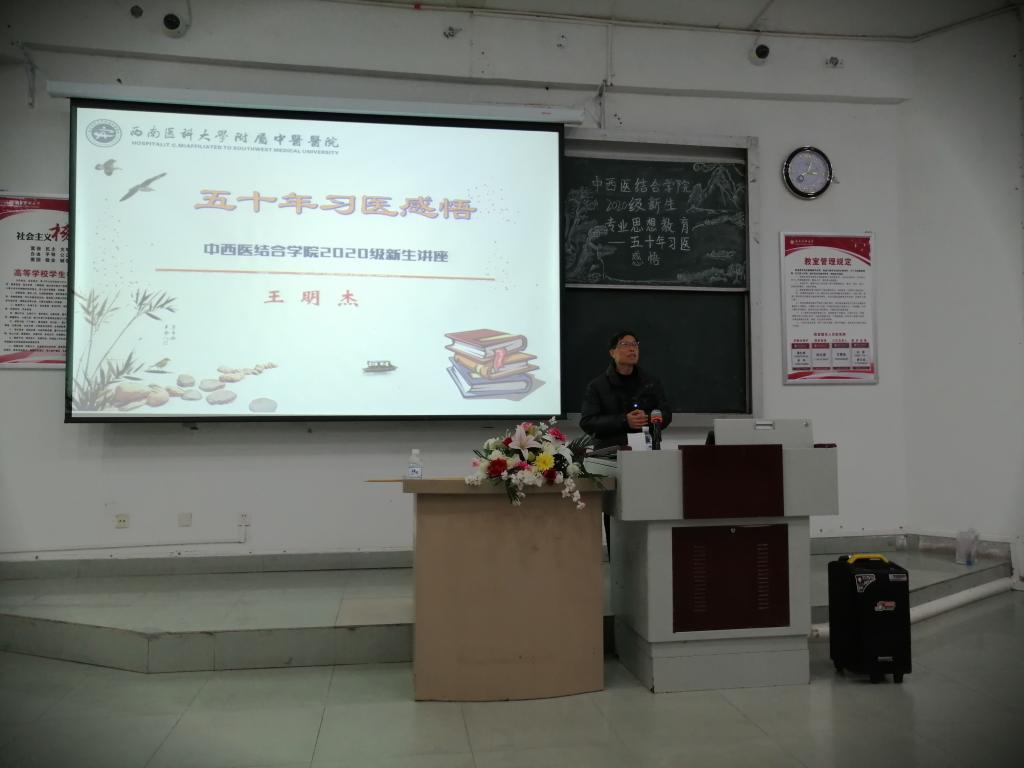 12月6号下午,中西医结合学院于鸿文楼101教室举行2020级新生专业思想教育之“五十年习医感悟”专题讲座,本次讲座由四川省名老中医、原kaiyun官网附属中医医院院长王明杰教授主讲,学生科科长谢晓东,2020级辅导员周霞及2020级全体同学参加了此次讲座。