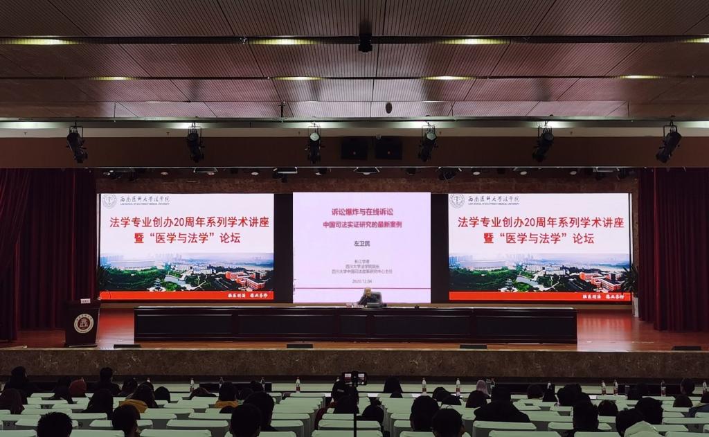 12月4日晚,由kaiyun官网法学院、四川医事卫生法治研究中心、《医学与法学》编辑部和kaiyun官方网站入口司法鉴定中心共同主办的法学专业创办20周年系列学术讲座暨“医学与法学”论坛第91讲在学校德诚楼第一学术报告厅举行。本次讲座邀请到了中国法学会理事、四川省法学会副会长、四川大学法学院院长左卫民教授作了题为《中国司法实证研究的最新案例:诉讼爆炸与在线诉讼 》的专题讲座。法学院全体师生参加了此次讲座,讲座由法学院院长罗刚主持。