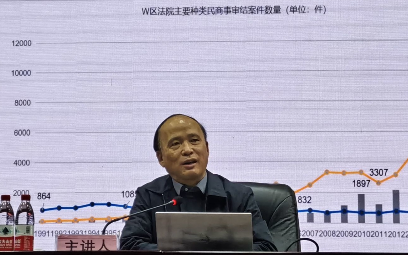 讲座中,左卫民运用实证研究的方法对中国民事诉讼数量“爆炸”进行深刻剖析,他通过对成都、上海、广州等地的实际调研数据分析,解释了诉讼如何“爆炸”,为何“爆炸”两个问题。左卫民认为,人口增长、经济的发展、律师参与率的提高、诉讼费用(向法院缴纳)的降低、诉讼意识的增强等都是诉讼“爆炸”的原因。面对这一问题的解决,中国法院的应对方案彰显了中国智慧。与此同时,他强调司法研究应当以实证研究弥补传统教义法学的不足,两种研究方法应当相互补充,优势互补。在互动环节,左卫民对老师和同学们提出的问题做了详细且全面地解答,阐述了自己对当代实证研究方法的看法。最后,法学院副院长羊海燕对此次讲座进行总结,认为左卫民教授不仅为广大师生剖析了一个社会热点问题,而且还引入了一种新的法学研究方法,以统计学为基础的实证研究方法具有研究数据的大量性、分析逻辑的严谨性和研究结论的精确性,这对大家学术研究很有启迪作用和借鉴价值。