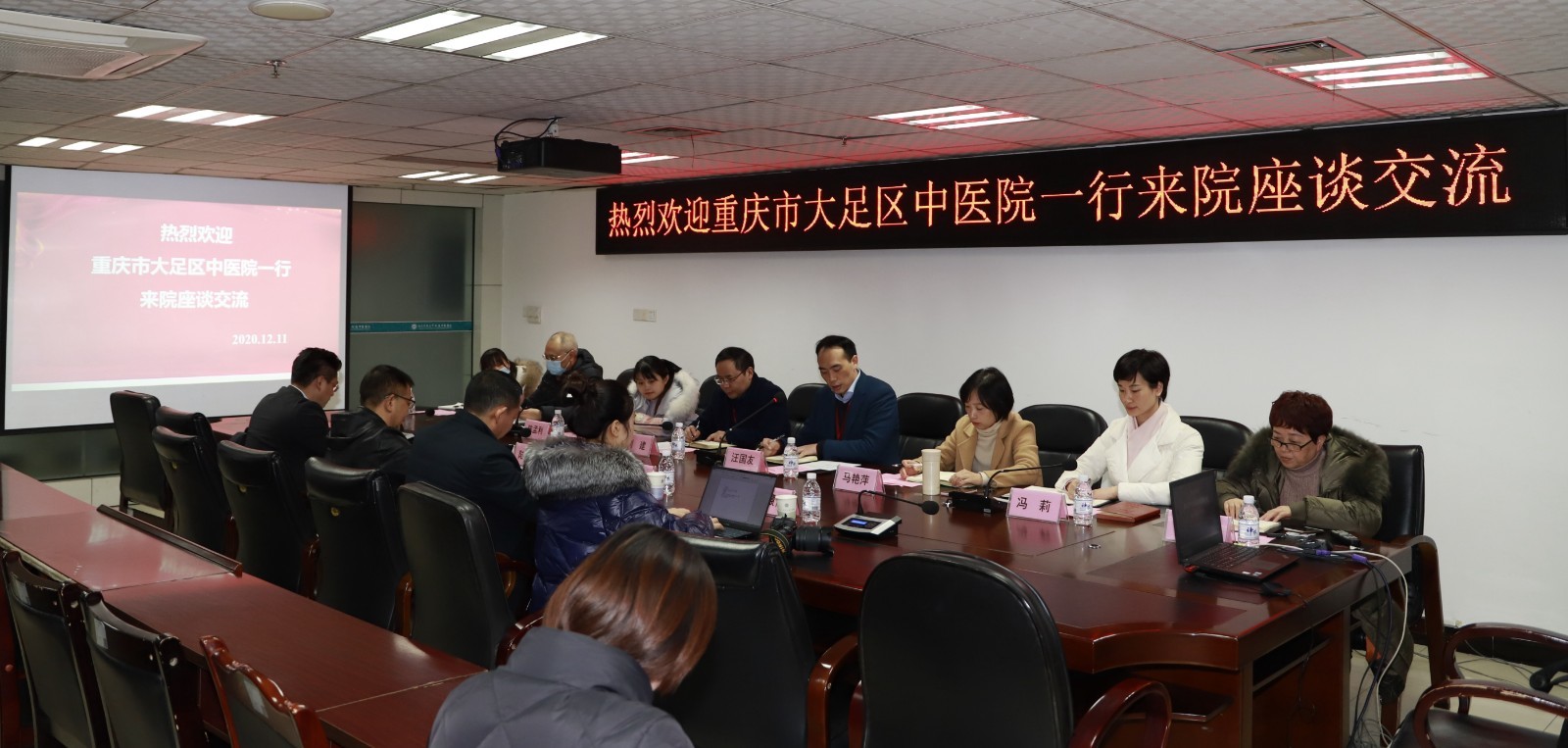 12月11日,附属中医医院举行与重庆市大足区中医院交流会,重庆市大足区中医院院长陆俊刚一行,附属中医医院院长刘建、副院长汪国友及相关职能部门负责人等参加了会议,会议由汪国友主持。