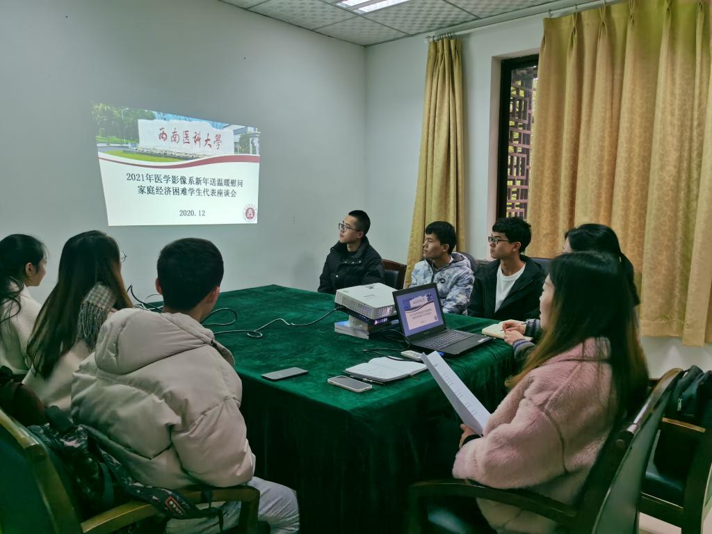 为了进一步了解医学影像系家庭经济困难学生的学习、生活和思想动态,更好地开展对家庭经济困难学生的帮扶工作,12月23日,医学影像系在忠山校区西山楼311会议室召开了2021年新年送温暖慰问家庭经济困难学生代表座谈会,医学影像系学生科科长苏娜、辅导员黄敏以及6名家庭经济特别困难学生、获得国家励志奖学金和国家助学金等学生代表参加了此次座谈会。
